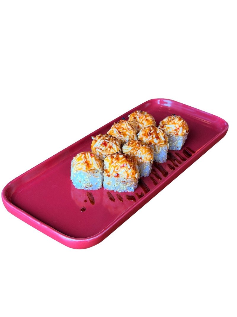 Рис, нори, сыр творожный, авокадо, омлет, крабовые палочки, кунжут, соус спайси, соус унаги.